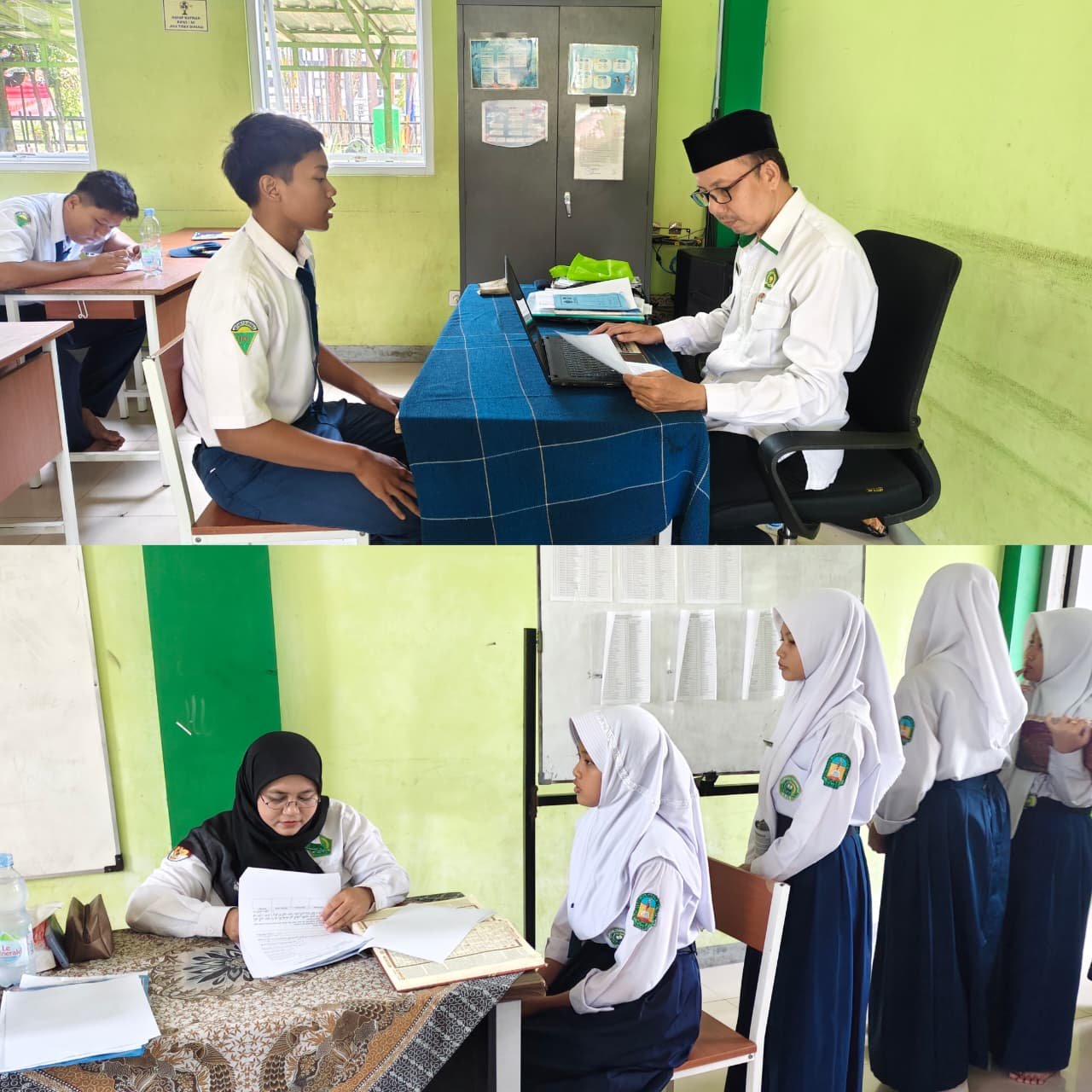 Kegiatan diawali pada hari Senin dengan ujian mata pelajaran Al-Qur'an Hadits oleh bapak Sutisna S. Ag., M. Pd. dan ibu Neni Noor Himmah, S. Ag. yang mengusung tema Baca Tulis Al-Qur'an (BTQ). Dalam ujian ini, para penguji menitikberatkan pada kelancaran membaca sesuai tajwid serta kemampuan menulis ayat-ayat suci Al-Qur'an dengan benar. Hal ini bertujuan untuk memastikan setiap lulusan memiliki landasan religius yang kuat.