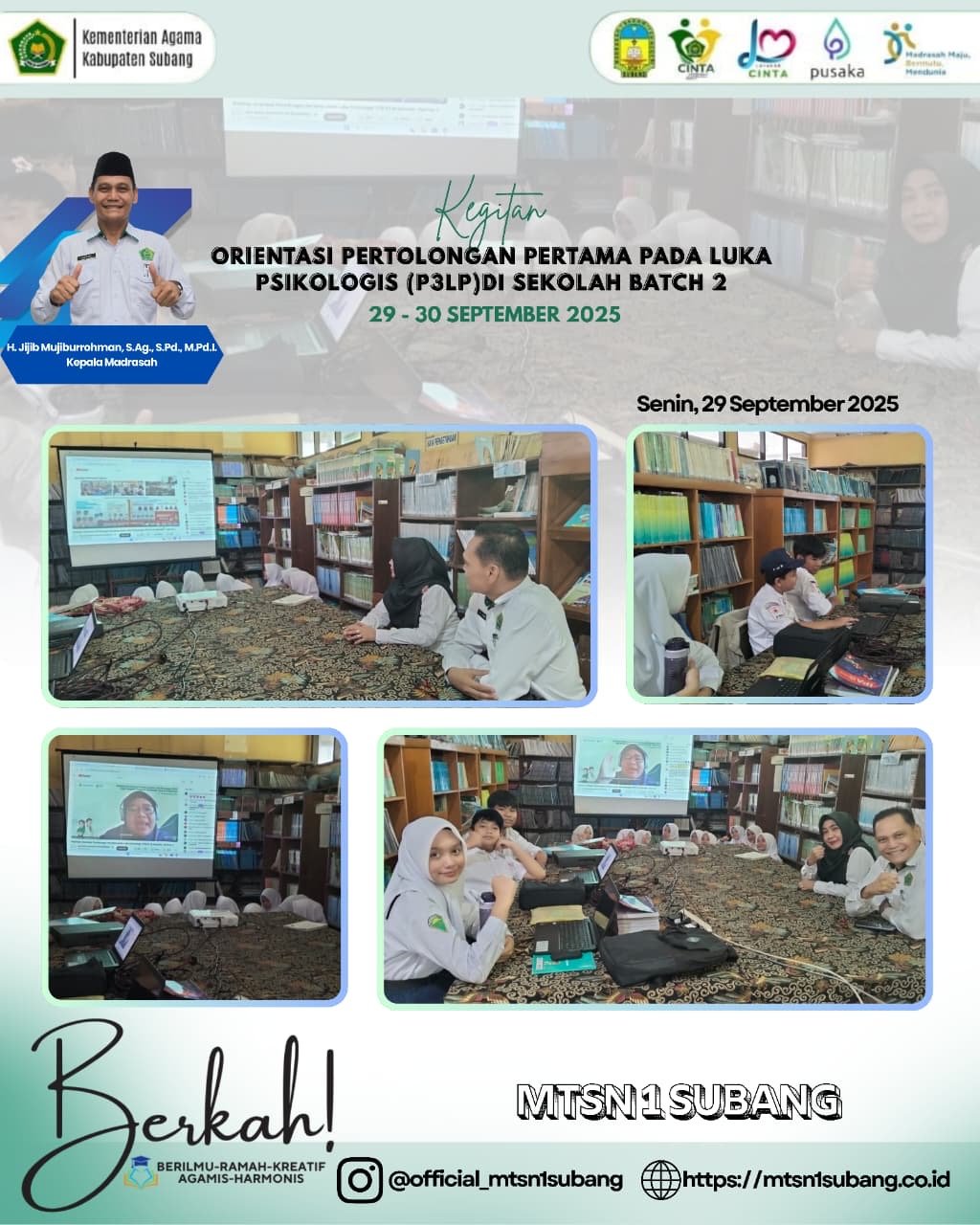 JF MTSN1SUBANG – Subang, 29 September 2025. MTsN 1 Subang kembali menunjukkan komitmennya dalam menjaga kesehatan jiwa seluruh warga sekolah. Pada tanggal 29 hingga 30 September 2025, MTsN 1 Subang berpartisipasi aktif dalam kegiatan Orientasi Pertolongan Pertama pada Luka Psikologis (P3LP) di Sekolah Batch 2.