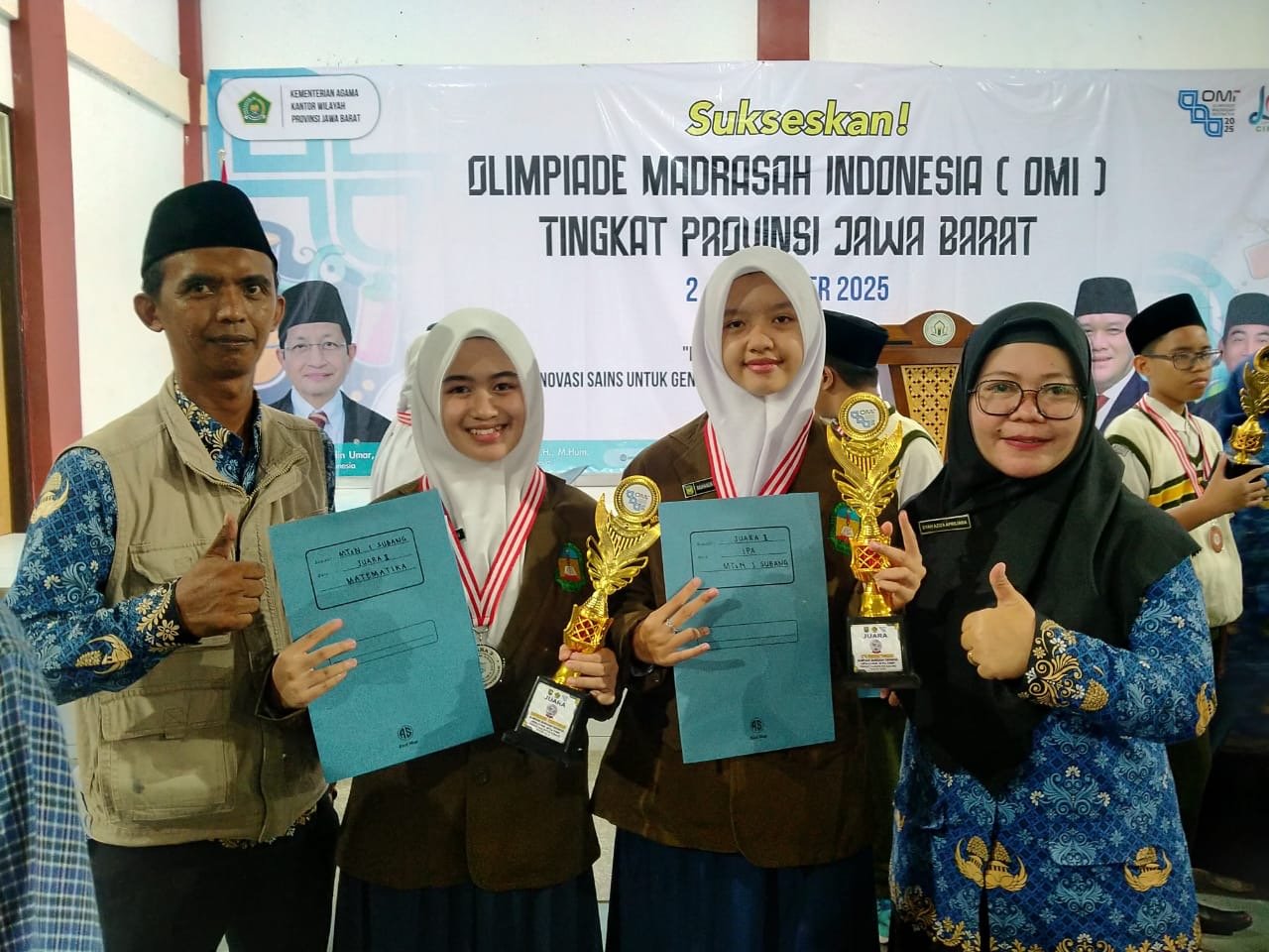 Dalam ajang OMI Tingkat Kabupaten Subang tahun ini, MTsN 1 Subang menunjukkan dominasinya di bidang sains dengan meraih hasil yang membanggakan. Dua siswi berhasil menempati posisi terbaik di bidang masing-masing: