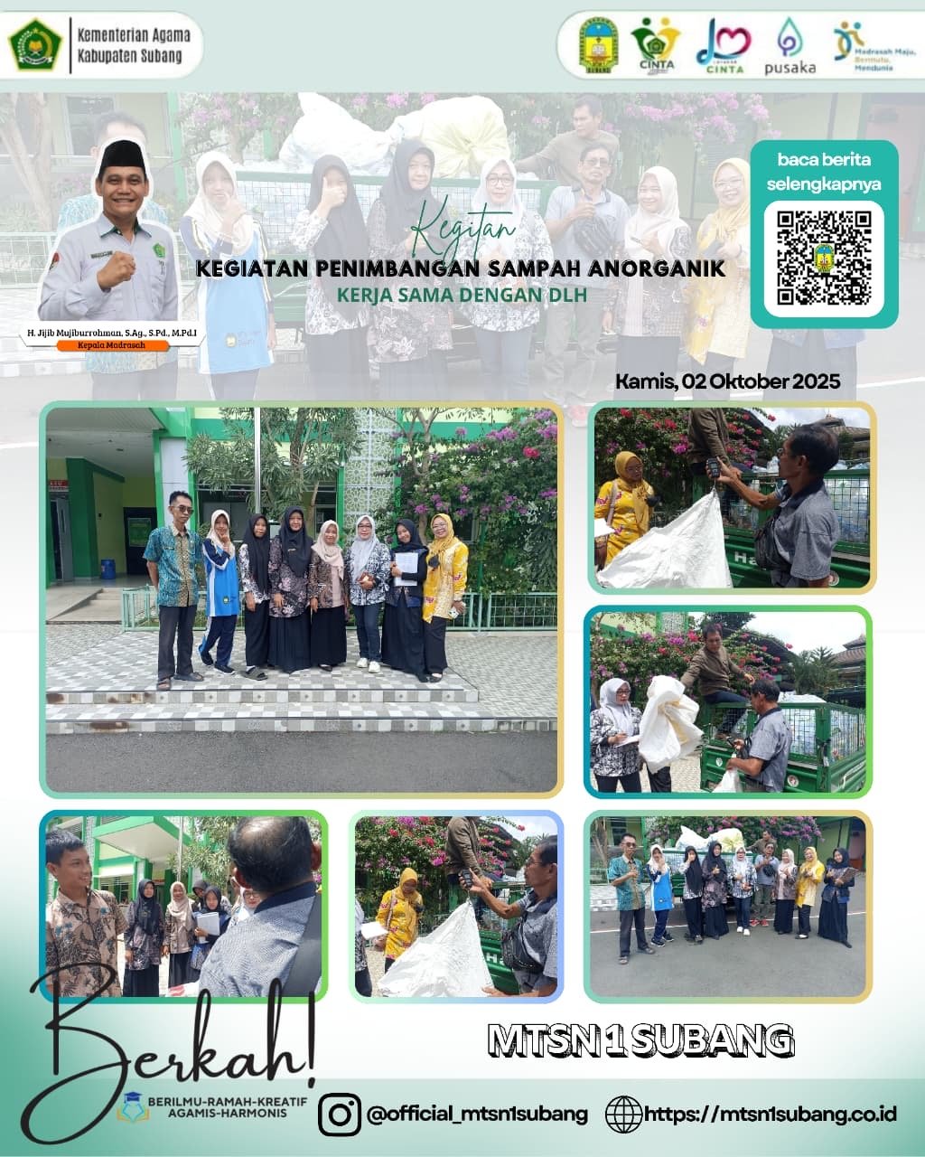 Kerja sama Tim K6 MTsN 1 Subang dengan DLH Kabupaten Subang memastikan bahwa sampah yang terkumpul akan dikelola dengan baik dan benar sesuai standar lingkungan. Ini merupakan langkah nyata MTsN 1 Subang menuju Madrasah yang Berilmu, Ramah-Kreatif, Agamis-Harmonis. (HR)
